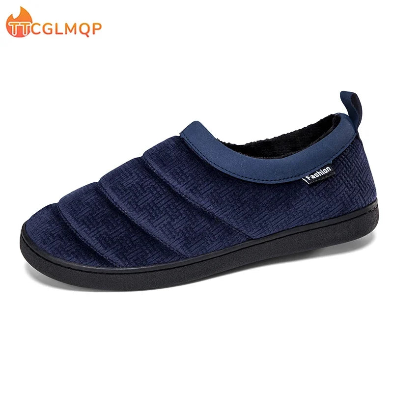 Unisex Home Men Cotton Slippers Winter Casual Indoor Outdoor Non Slip Shoes Warm Velvet Sneakers 2023 Men Women Snow Slippers